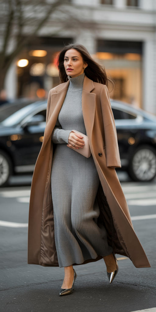 A merino wool or cashmere knitted maxi dress is a winter wardrobe essential. Its inherent elegance makes it perfect for various occasions. Elevate this piece by layering a long, tailored wool coat over it. Finish with pointed heels to transition seamlessly from day to evening. This outfit exudes a quiet luxury, making it a go-to for a polished appearance.