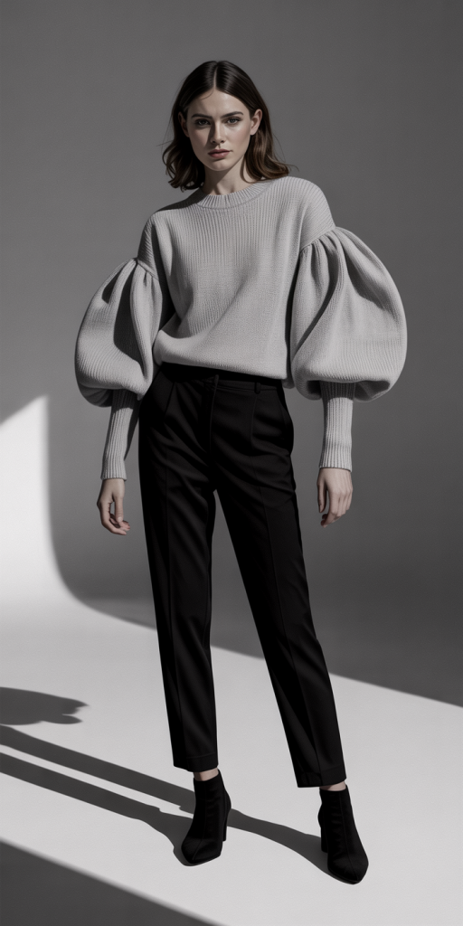 For a truly sassy statement, look no further than the dramatic sleeve. This trend focuses on engineered shapes, such as oversized puff sleeves, bell sleeves, or voluminous balloon sleeves that add dynamic movement and architectural interest to a simple sweater.