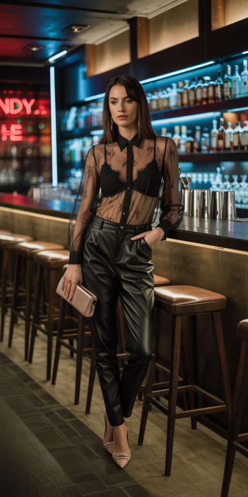 For those with an edgier style, the combination of sleek leather pants and a delicate lace blouse offers a compelling study in contrasts. The toughness of the leather is softened by the intricate, feminine detail of the lace. This outfit is perfect for a more dynamic date night, such as a concert or a cocktail bar. In line with 2026 trends, consider metallic leather pants for a bolder statement, or stick to classic black for timeless appeal. A simple heel and a clutch are all that’s needed to finish this look.