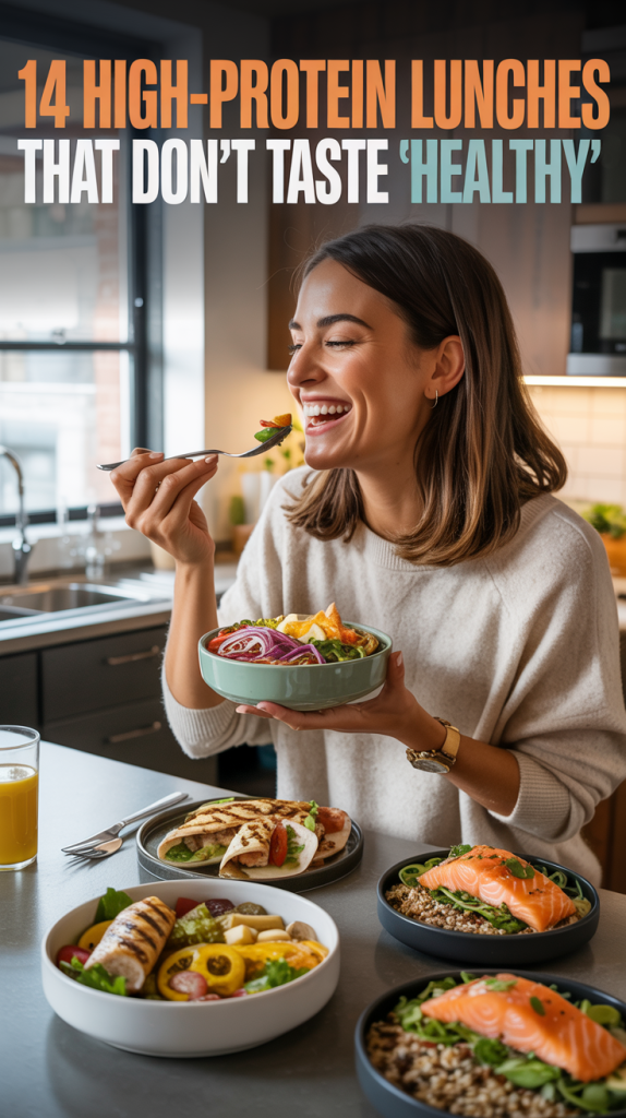 Ready to jump into some tasty recipes? Here are 14 high-protein lunches that prove healthy can be absolutely delicious: