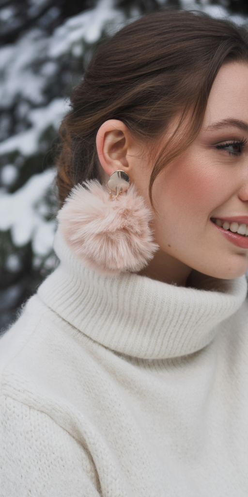 - Start with Faux Fur Pom-Pom Drops. These are lightweight, playful drops featuring a small, soft faux fur pom-pom in winter white, blush, or deep burgundy. Pair them with a simple, solid-colored turtleneck or a chunky knit sweater to emphasize the cozy texture.