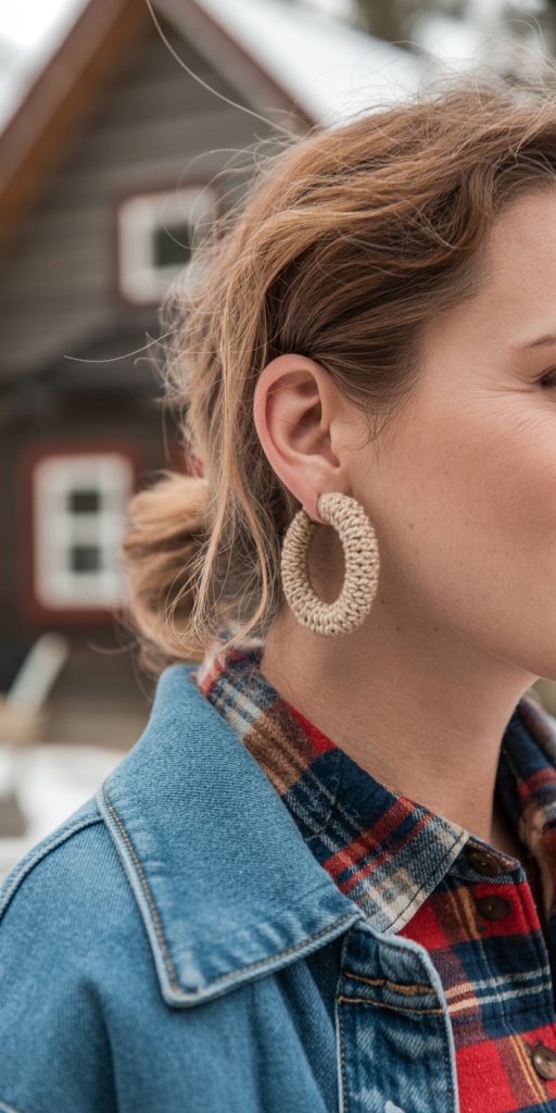 - Next, consider Knitted or Crocheted Hoops. These are hoops wrapped in fine yarn or feature a delicate crocheted motif, offering a unique, handmade, rustic charm. They are excellent for a casual weekend look, especially when paired with flannel or denim.