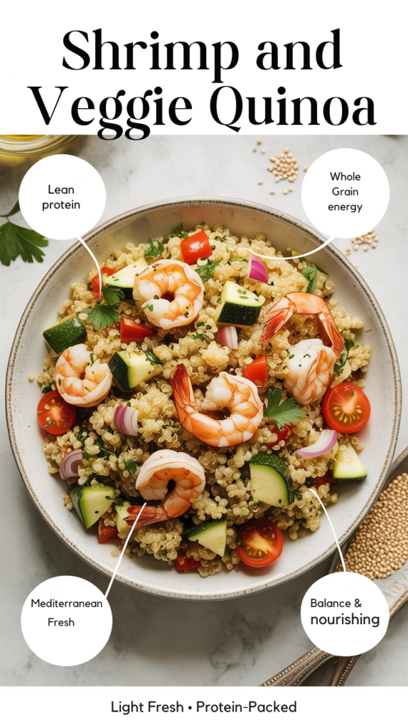 4. Serve shrimp with quinoa salad and extra lemon wedges.