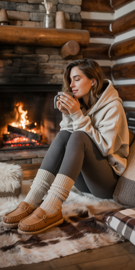 Outfit 21: Cozy Cabin. The ultimate in comfort, this look pairs an Oversized Hoodie with Fleece-Lined Leggings. Wear with Chunky Socks and Moccasins or slippers for a relaxed feel.