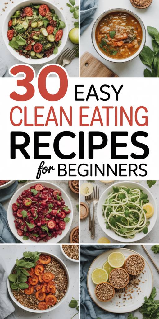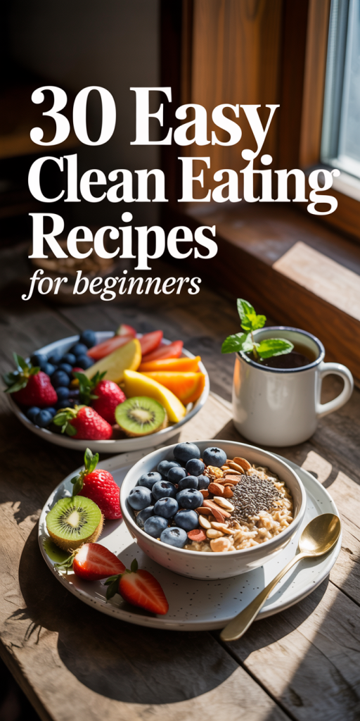 This guide brings you 30 easy clean eating recipes , breakfasts, lunches, dinners, snacks, and even desserts , that are affordable, beginner-friendly, and full of flavor. Most of them use pantry staples and require less than 30 minutes of prep.