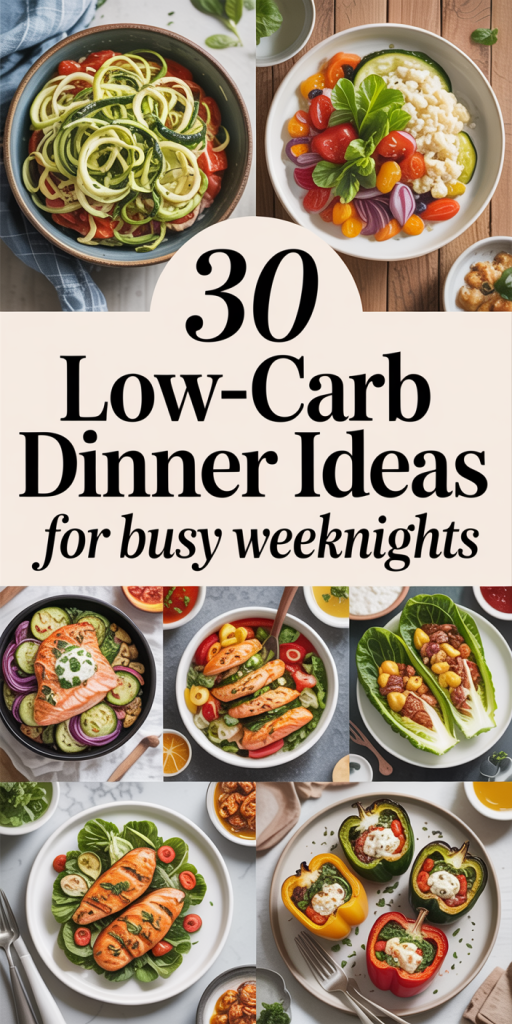 Weeknights are hectic, work, kids, errands, and the last thing we want is a complicated dinner that takes ages or leaves us reaching for takeout. That’s why we put together this collection of 30 low-carb dinner ideas for busy weeknights: quick, satisfying meals you can make in about 30 minutes or less. Each recipe focuses on high flavor, minimal prep, and real ingredients so we can eat well without spending our evening in the kitchen. Whether we’re craving skillet comfort, sheet-pan simplicity, warming one-pot dinners, salad-forward bowls, or quick wraps and skewers, there’s a low-carb option here that fits the bill.
