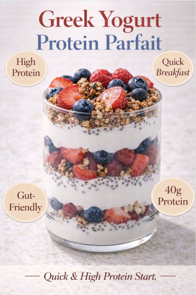 1) Greek Yogurt Parfait With Whey Granola (Quick, 20–30g Protein)