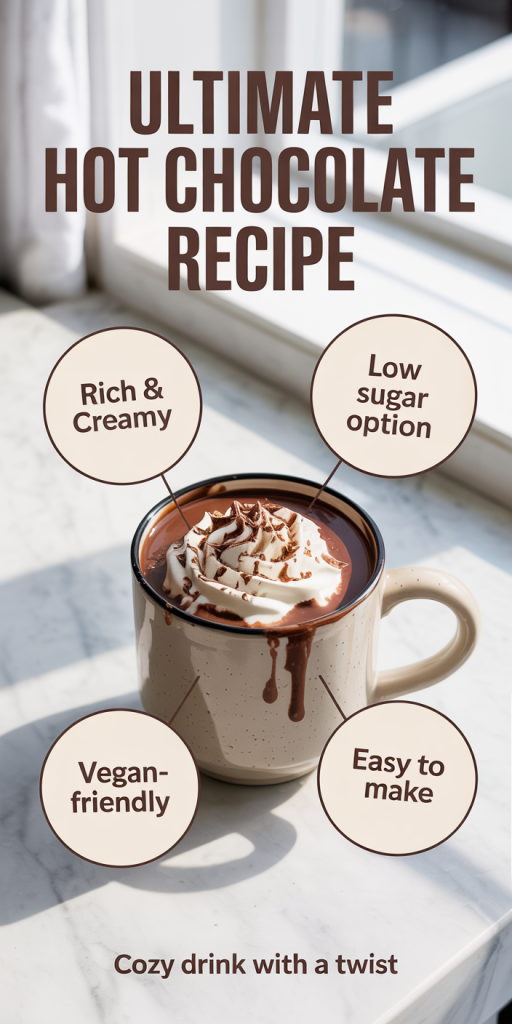 This is the traditional recipe we all know, rich, creamy, and satisfying. Using cocoa powder, sugar, milk, and a touch of vanilla, it’s quick to prepare and always a crowd-pleaser.