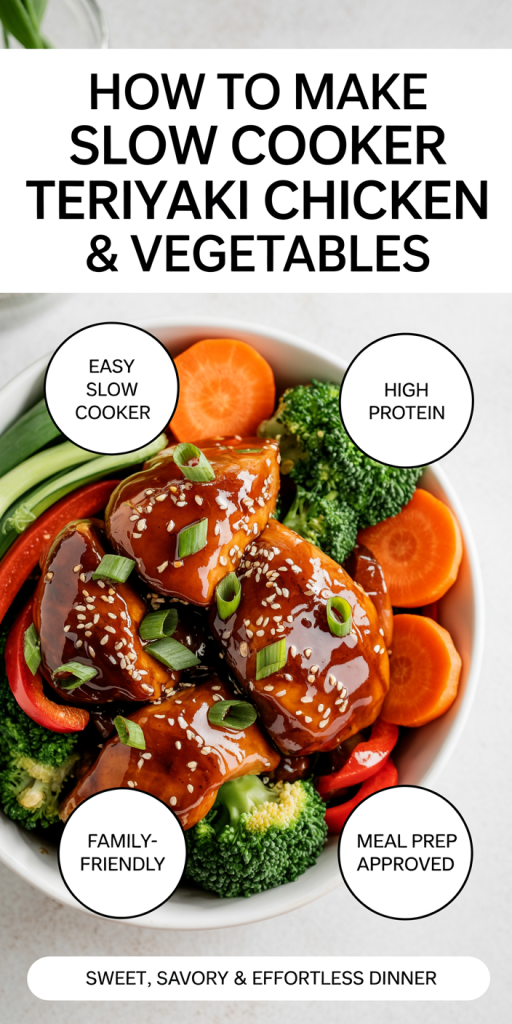 Slow cooker teriyaki chicken & vegetables succeeds because it leverages three reliable cooking principles: gentle, even heat: flavor infusion over time: and the natural thickening/starch behavior of sauces and vegetables. When we cook chicken low and slow, collagen breaks down and the meat becomes tender without requiring constant attention. Vegetables like carrots, potatoes, and onions release starches and moisture that mingle with the sauce, creating a naturally cohesive dish.