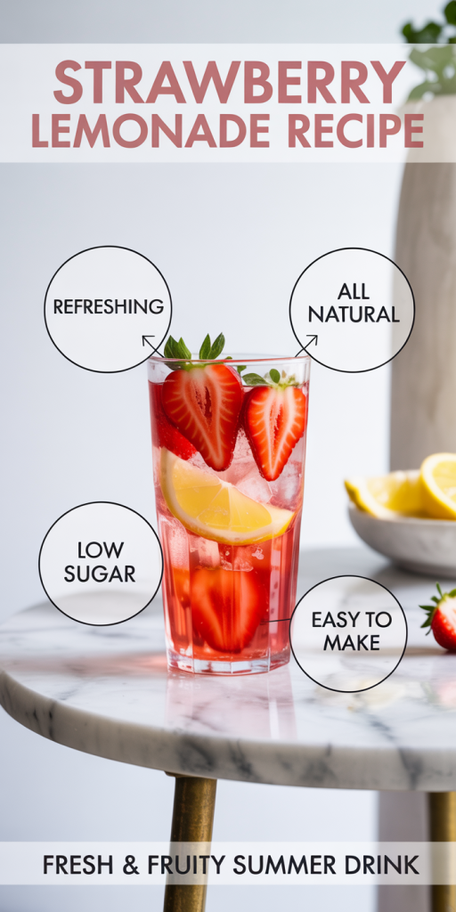 Strawberry lemonade is more than just a drink: it’s an experience. The vivid red color grabs our attention, while the mouthwatering aroma of fresh strawberries combined with zesty lemons stirs our senses. This beverage has a way of evoking nostalgia, reminding us of sunny days spent with friends and family. Its versatility makes it suitable for any occasion, from casual get-togethers to elegant parties.