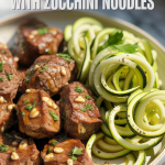 - Top with Steak Bites: Next, we’ll spoon the juicy garlic butter steak bites right on top of the zoodles, allowing the sauce to run beautifully over the noodles.
