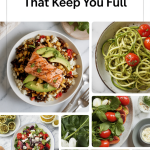 Satiety is multidimensional. Protein has the strongest effect on hunger hormones and thermogenesis, so it’s our cornerstone for filling meals. Fat slows gastric emptying, which helps prolong fullness between meals. Fiber, especially soluble fiber, adds bulk, feeds gut microbes, and moderates glucose absorption. Finally, volume from low-calorie vegetables fills the stomach and sends stretch signals that reduce appetite. Combining these elements gives the best chance of staying full on fewer calories.