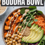 The Sweet Potato and Chickpea Buddha Bowl is not only visually stunning but also a nutritious option for any meal. With its rich flavors, vibrant colors, and endless variations, it suits all dietary preferences and can be customized to satisfy our cravings. By embracing the idea of a Buddha bowl, we’re not just nourishing our bodies: we’re encouraging creativity in our cooking habits. So let’s give this delicious bowl a try and make it part of our healthy eating journey.